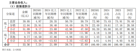 公司的销售模式是线上渠道为主、线下渠道并行。线上渠道主要通过直营、分销模式运营,其中直营以天猫、抖音、京东、快手、拼多多等平台为主,分销包括淘宝、京东、唯品会等平台。线下渠道主要通过经销商模式运营,渠道包括化妆品专营店、百货、新型商城集合店等。